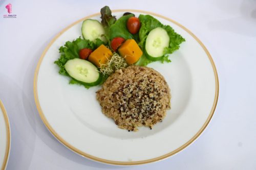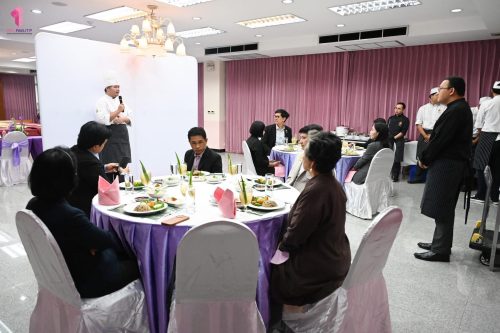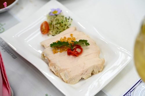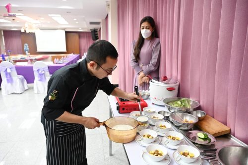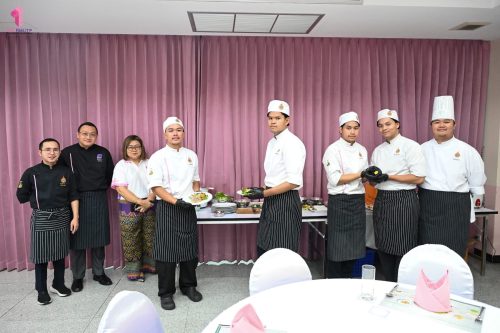 สาขาวิชาอาหารและโภชนาการ จัดทำอาหาร ในการรับตรวจประเมินผลการปฏิบัติงานของคณบดีนำโดย อาจารย์ และนักศึกษาสาขาวิชาอาหารและโภชนาการ ดร.จักรกฤษณ์ ทองคำ อาจารย์ศิวกร ตลับนาค อาจารย์ประจำสาขาวิชาอาหารและโภชนาการ คณะเทคโนโลยีคหกรรมศาสตร์ (โชติเวช) จัดทำอาหารมื้อกลางวันในเมนู“ข้าวมันไก่เพื่อสุขภาพ” ได้ถูกพัฒนาขึ้นมาเพื่อตอบโจทย์ปญหาสถานการณ์การเจ็บป่วยของคนในสังคมไทย ที่มีแนวโน้วการเจ็บป่วยจากโรคไม่ติดต่อเรื้อรัง (NCDs) เพิ่มมากขึ้น สาขาวิชาอาหารฯ จึงได้คิดค้นพัฒนานวัตกรรมข้าวมันไก่ที่เปนเมนูยอดนิยมของสังคมไทย และมีคุณค่าทางโภชนาการที่มุ่งเน้นแก้ปญหาตรงกับประเด็นความต้องการของผู้บริโภคและขนมหวานสุขภาพ “บัวลอยสาคูต้นสอดไส้แห้ว“ คัดสรรวัตถุดิบโดยใช้สาคูต้นจากภาคใต้ แห้วจังหวัดสุพรรณบุรี และแปะก๊วย กระตุ้นการทำงานของสมอง